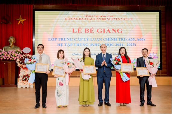 Căn cứ vào kết quả học tập toàn khoá học và bình xét của lớp. Ban Giám hiệu quyết định khen thưởng mỗi lớp 5 học viên có kết quả tốt trong học tập và rèn luyện.