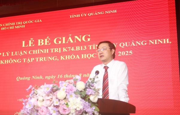 Phát biểu bế giảng khóa học, tiến sĩ Trần Quang Phú, Phó Vụ trưởng, Vụ Quản lý đào tạo, bồi dưỡng đánh giá cao sự nỗ lực của các giảng viên và học viên đã hoàn thành xuất sắc mọi nhiệm vụ khóa học; ghi nhận sự quan tâm của Tỉnh ủy Quảng Ninh đối với công tác đào tạo bồi dưỡng cán bộ của địa phương.