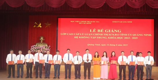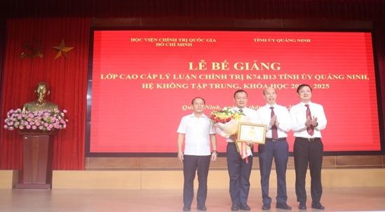 Dự Lễ Bế giảng có lãnh đạo Vụ Quản lý đào tạo, bồi dưỡng - Học viện Chính trị quốc gia Hồ Chí Minh, lãnh đạo Trường Đào tạo cán bộ Nguyễn Văn Cừ và đại biểu Ban Tổ chức Tỉnh ủy Quảng Ninh.